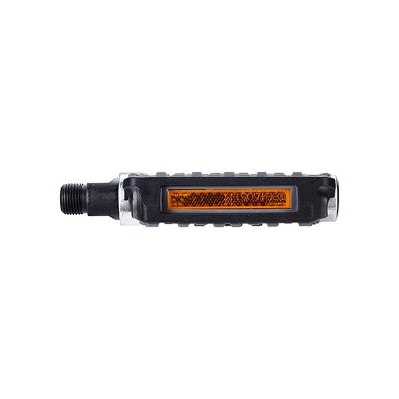 Aluminiumkörper mit langlebigem und leichtem Käfig. Rutschfeste Oberfläche aus Gummi. Borstahl-Achse. Kugellager. Beidseitige Reflektoren für bessere Sichtbarkeit.